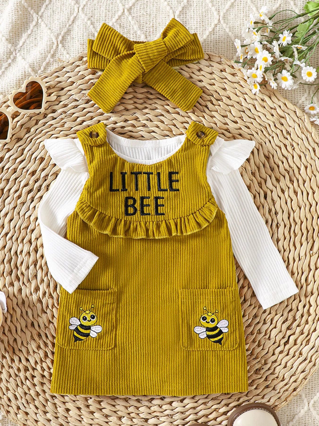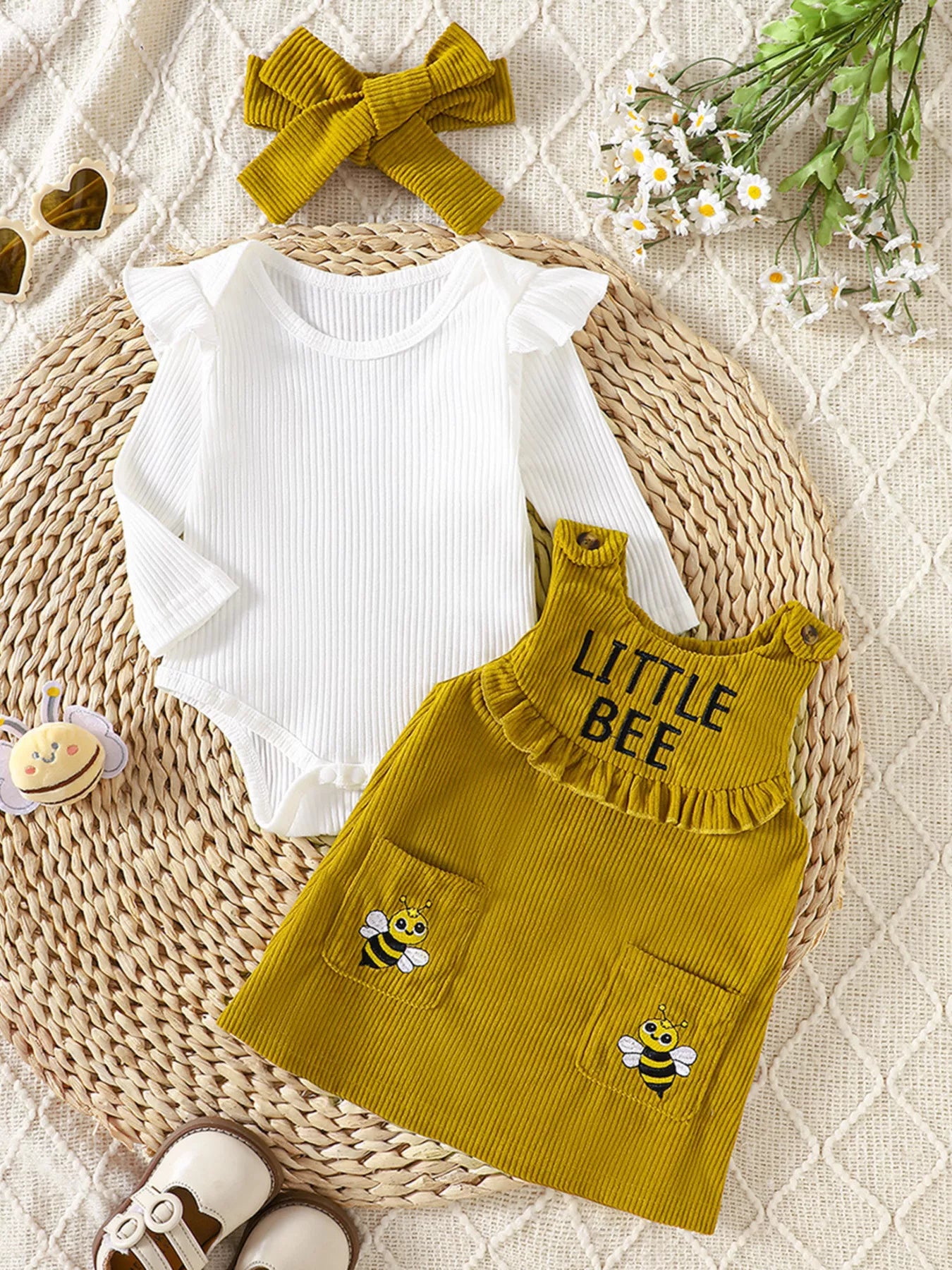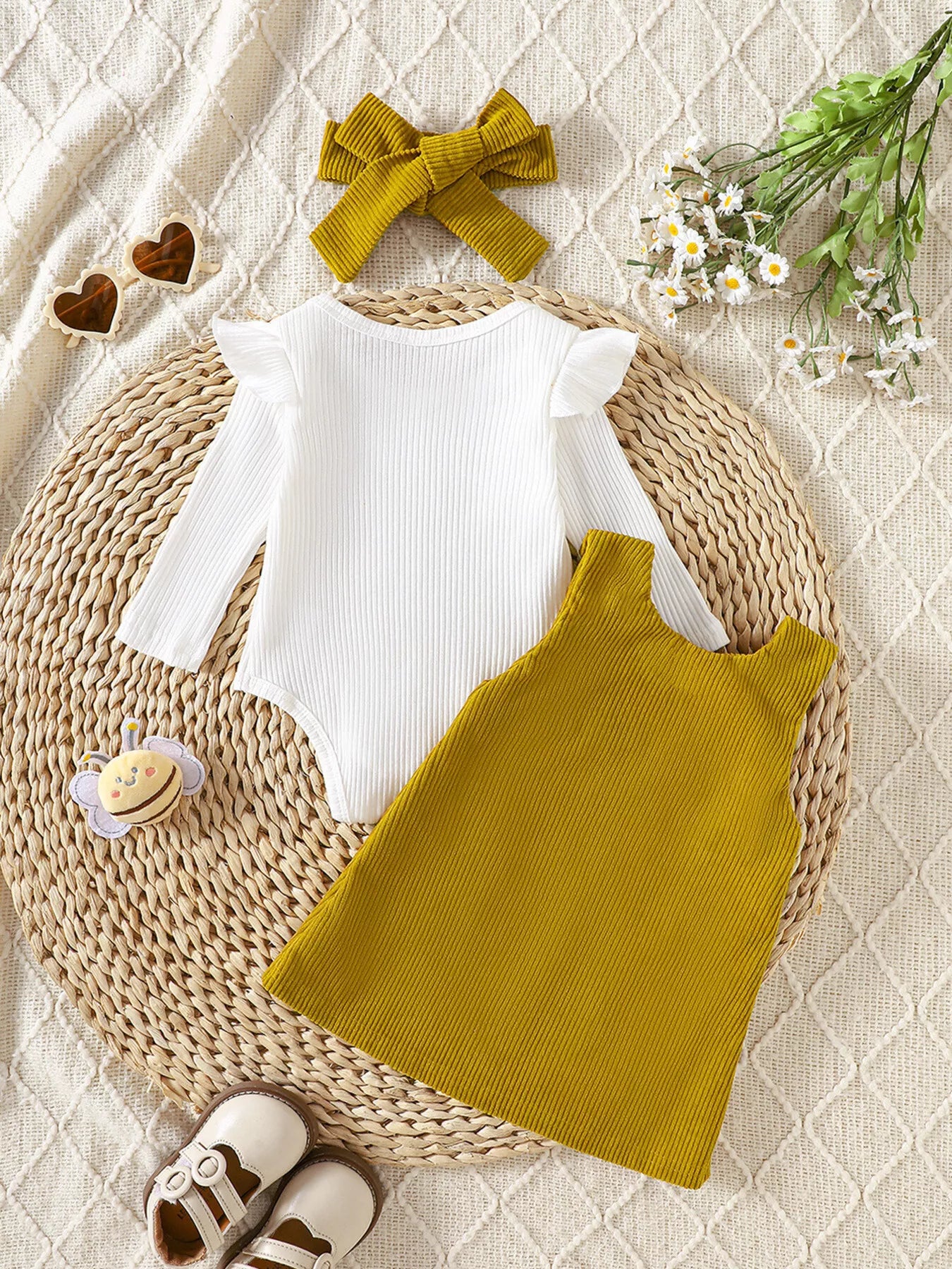 Children's Ribbed Bodysuit & Dress & Headband Set