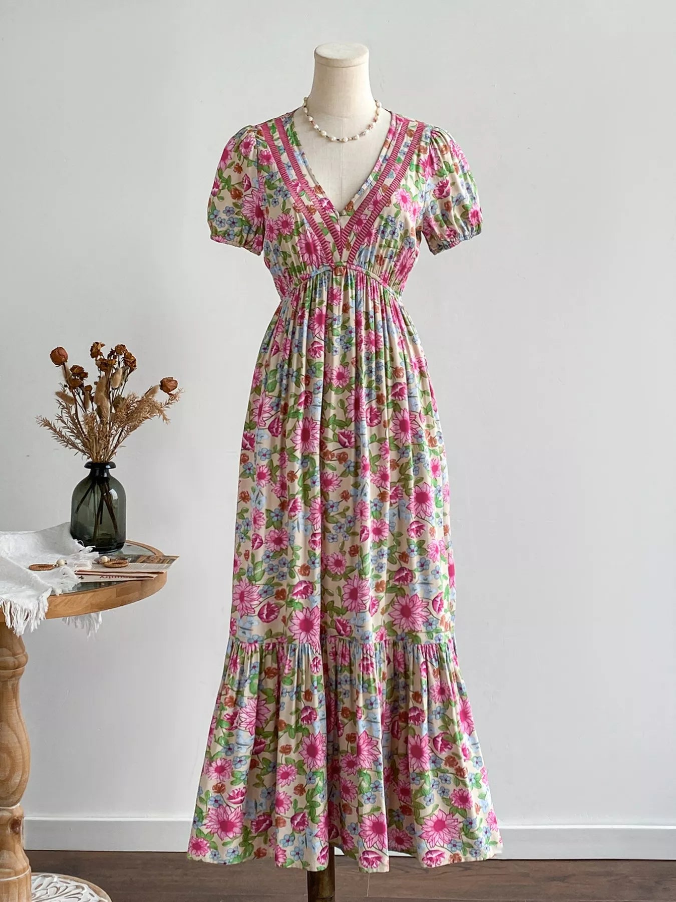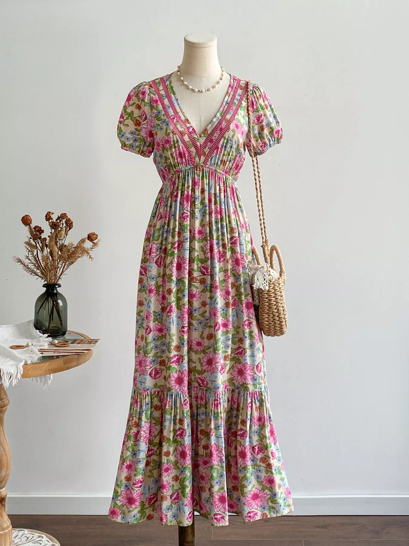 Floral Print V-Neck Puff Sleeve Dress
