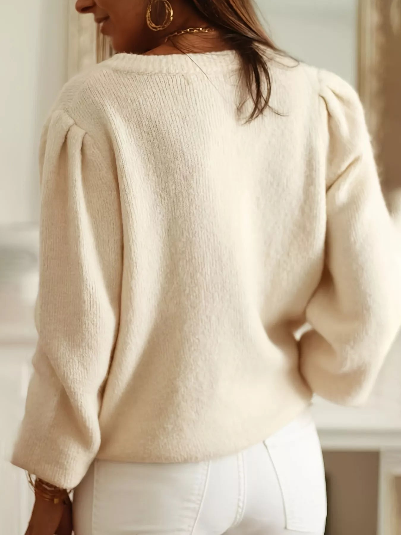 • Features:Buttoned,Openwork,Ruched