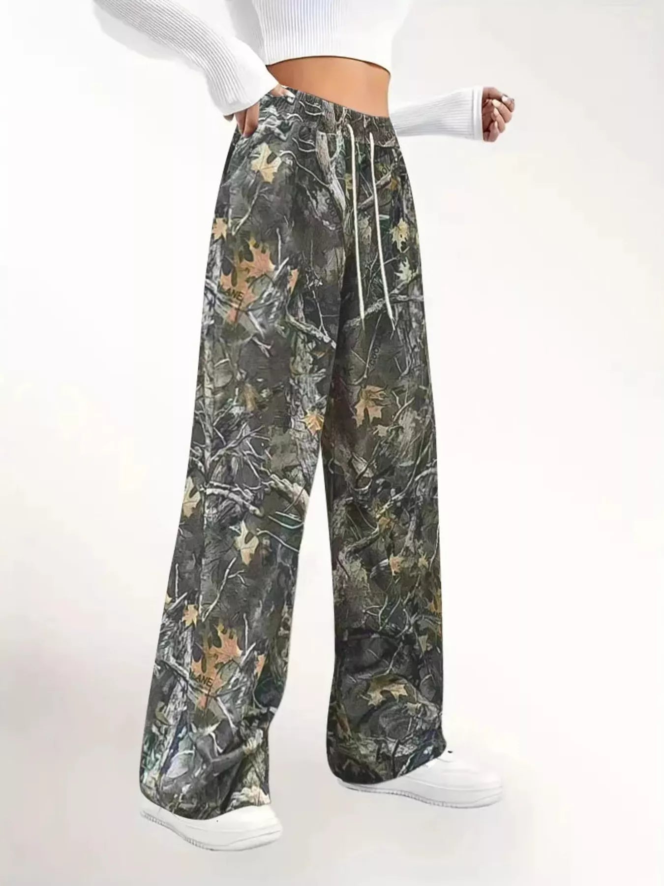 Relaxed Fit Camo Print Drawstring Waist Pants