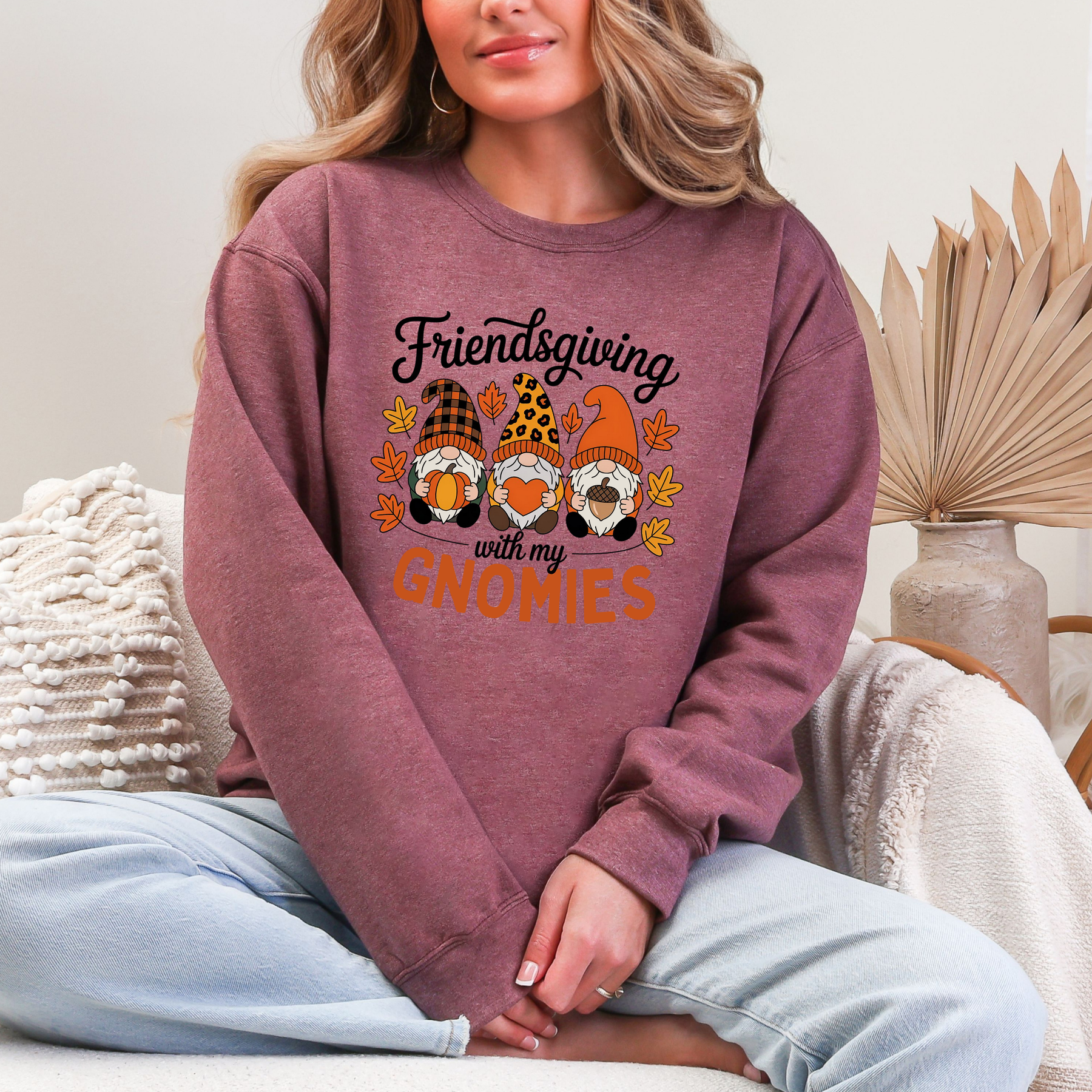 Celebrate Friendsgiving in style with our “Friendsgiving with My Gnomies” sweatshirt! Featuring three adorable fall-themed gnomes surrounded by autumn leaves, this cozy sweatshirt is perfect for holiday gatherings, potlucks, or simply staying comfy all season long. Made with soft, premium fabric for warmth and all-day comfort.