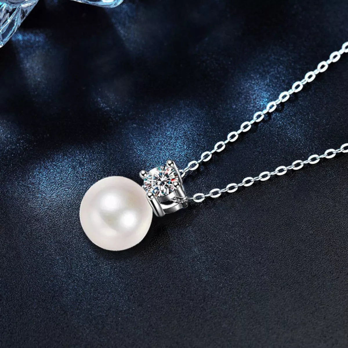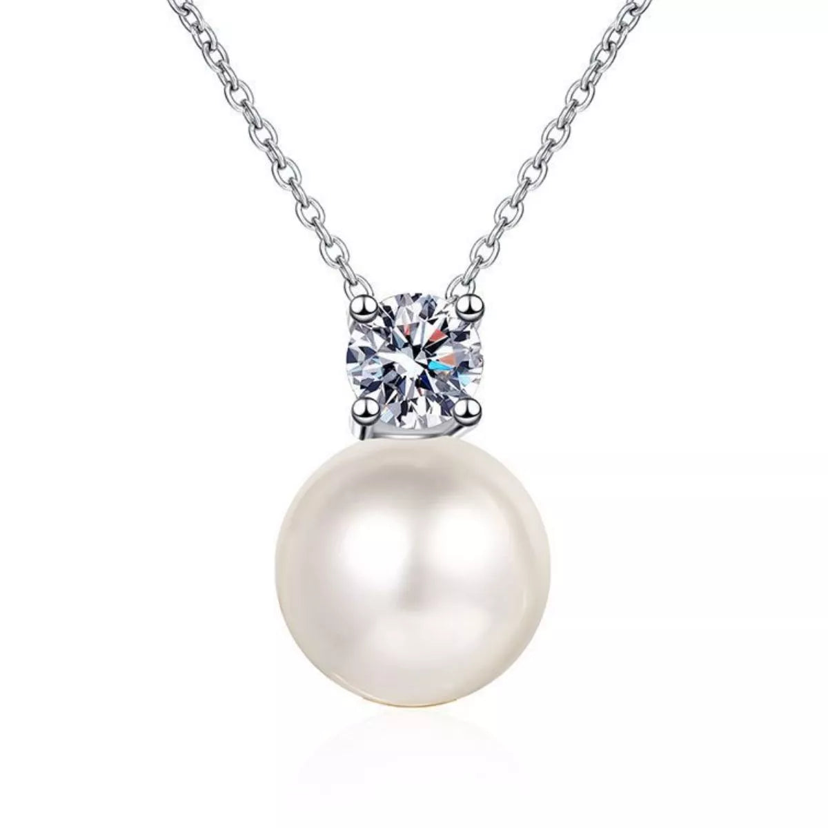 925 Sterling Silver Moissanite Pearl Necklace